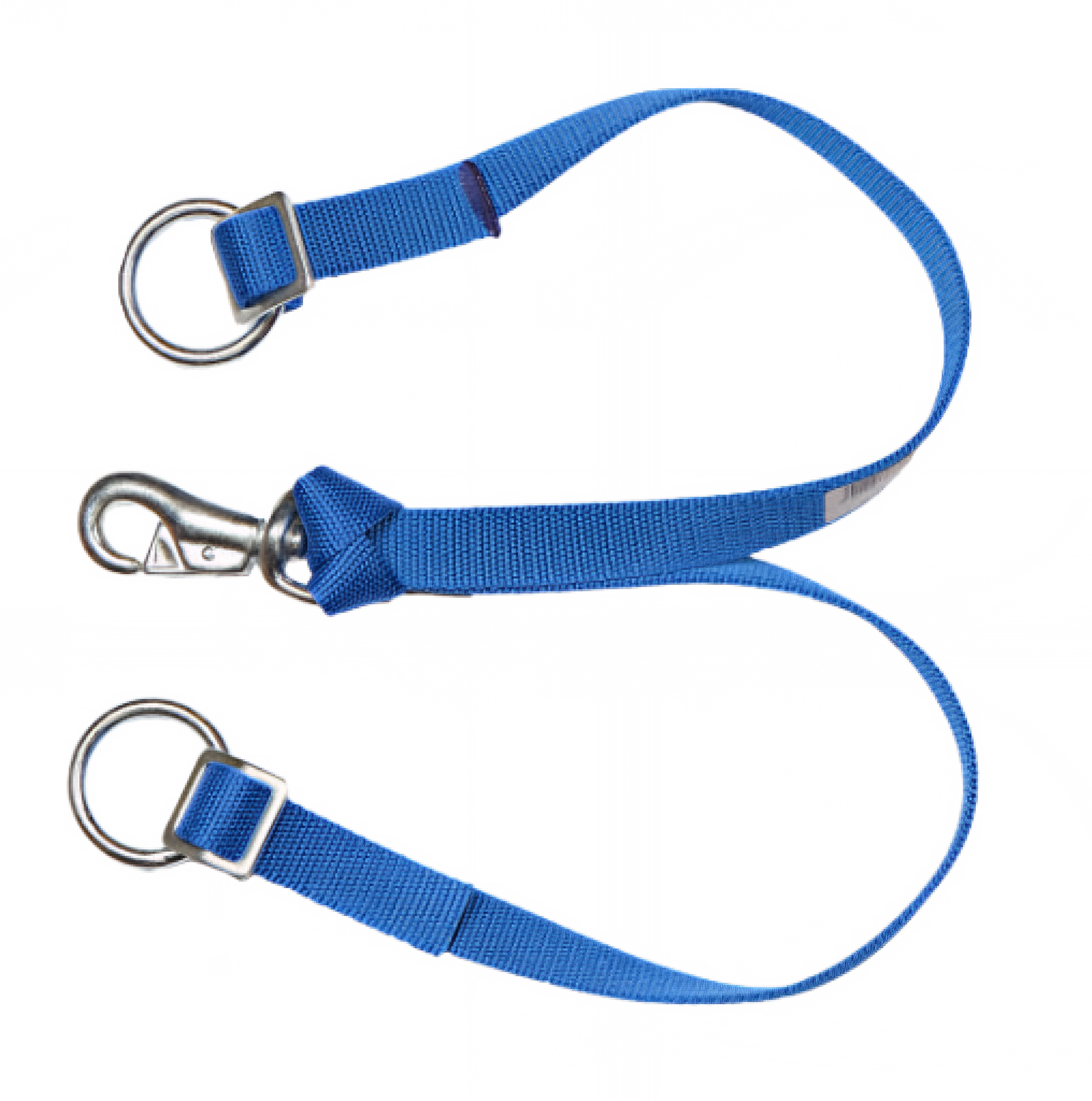 Startseite » Rind » Anbindungen für Rinder » Bodenriemen BR 101 – Doppelter Nylonriemen, blau, mit 8 mm Ringen & Karabinerhaken, 1,40 m