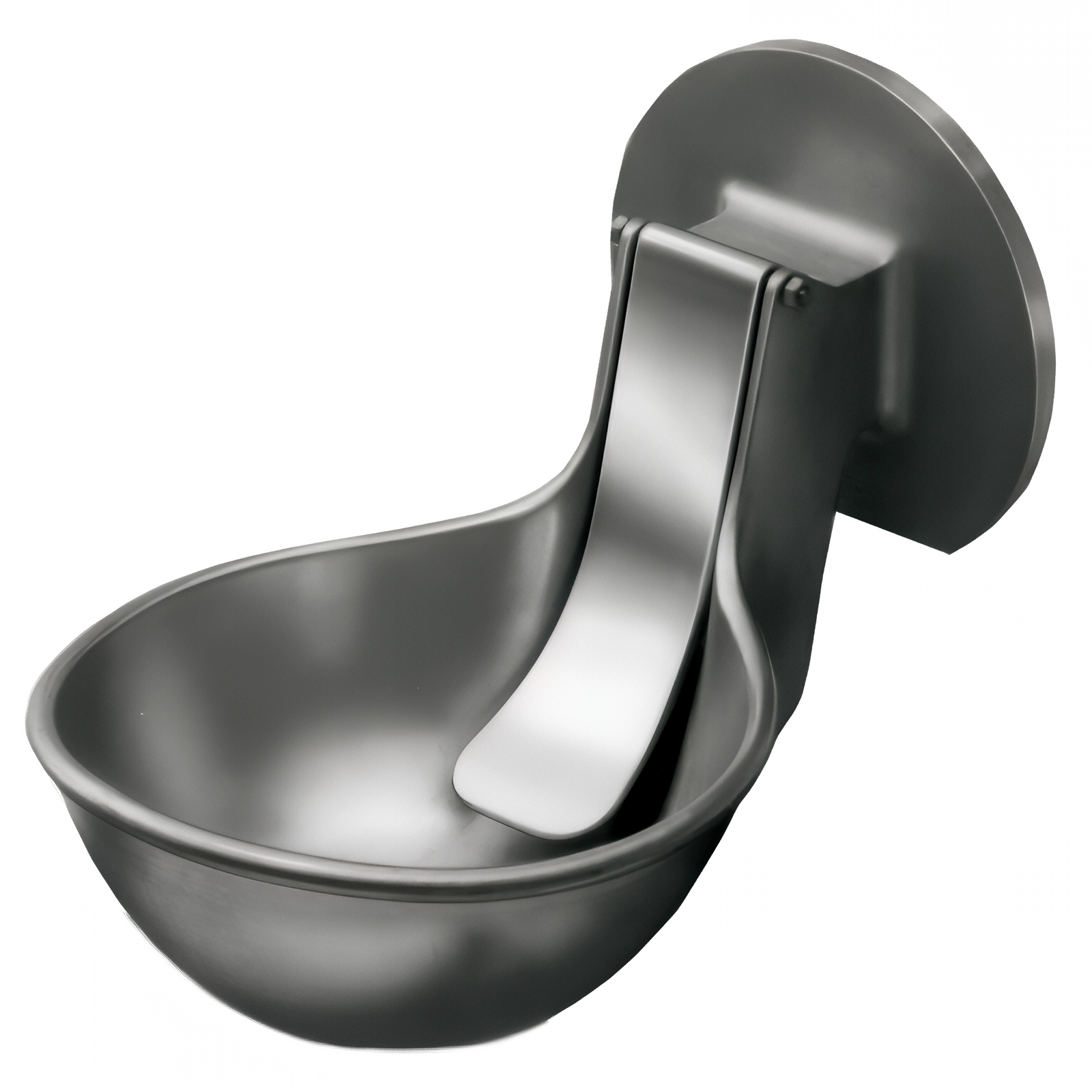 Robuste Rindertränke aus Aluminiumguss für Wasserfässer. Mit Edelstahldruckzunge, Flanschdichtung und leicht austauschbarem Kunststoffventil.