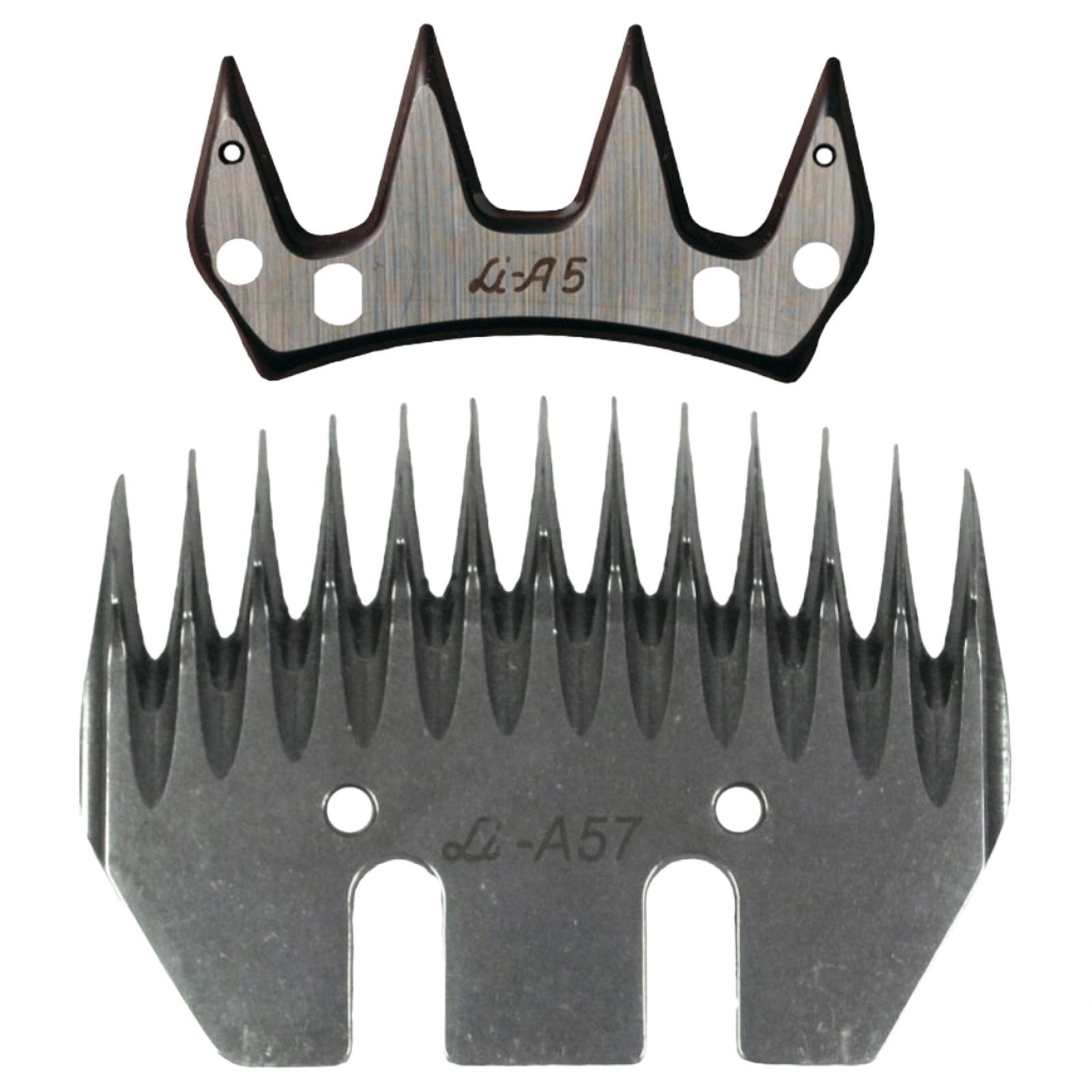 Der LISCOP LC A 57 Messersatz ist speziell für die Schur von Lamas und Alpakas ausgelegt. Die Kombination aus Obermesser mit 4 Zähnen und Untermesser mit 13 Zähnen liefert einen ruhigen, gleichmäßigen Schnitt und schont das Tierfell. Die Schnittbreite von ca. 77 mm ermöglicht zügiges Arbeiten, die Schnitthöhe von ca. 7–10 mm sorgt für eine sichere, tiergerechte Länge. Passend für den LISCOP Scherkopf V.