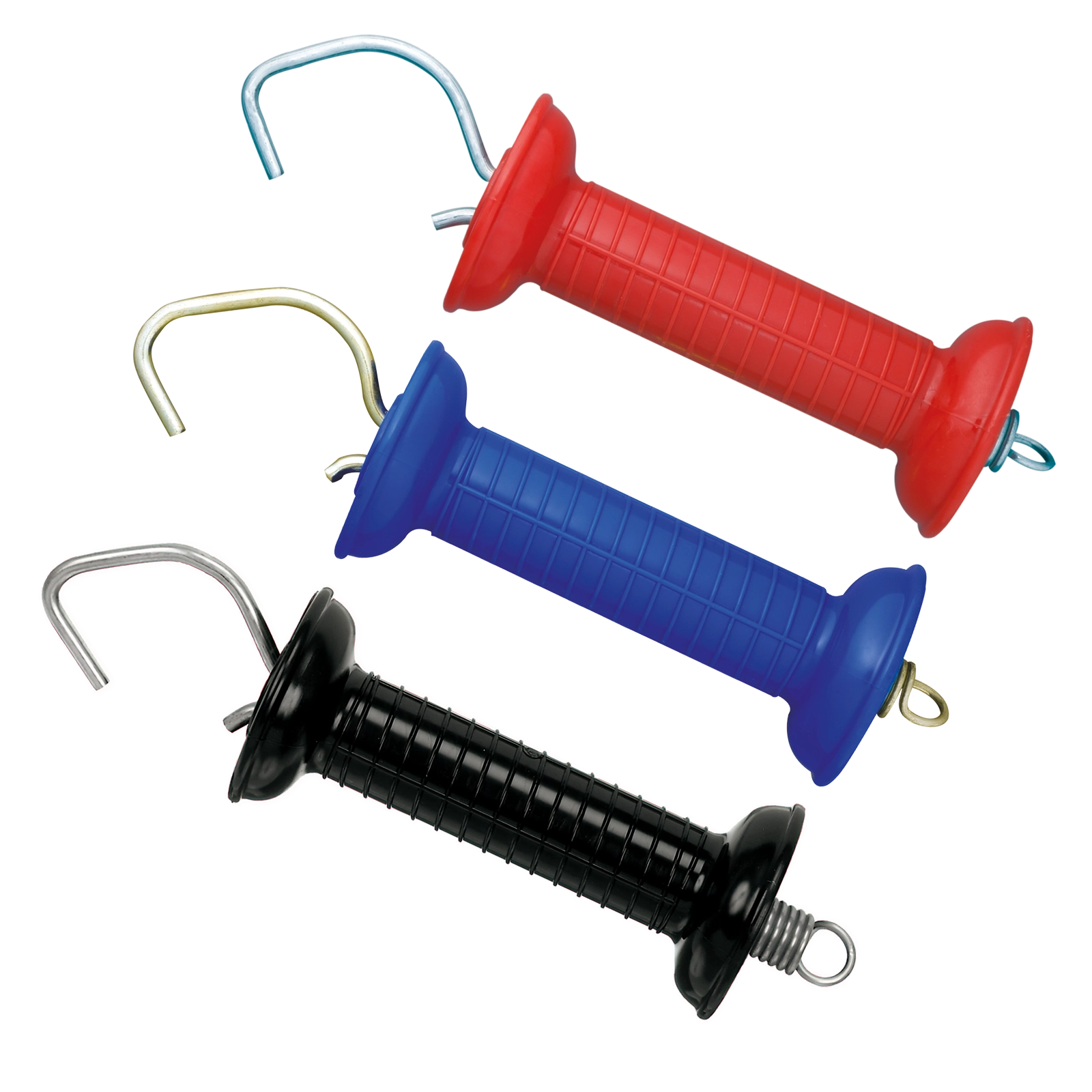 Stabiler Torgriff mit verzinktem Haken, starker Feder und breiter Isolierfläche – ideal für den täglichen Einsatz auf der Weide.