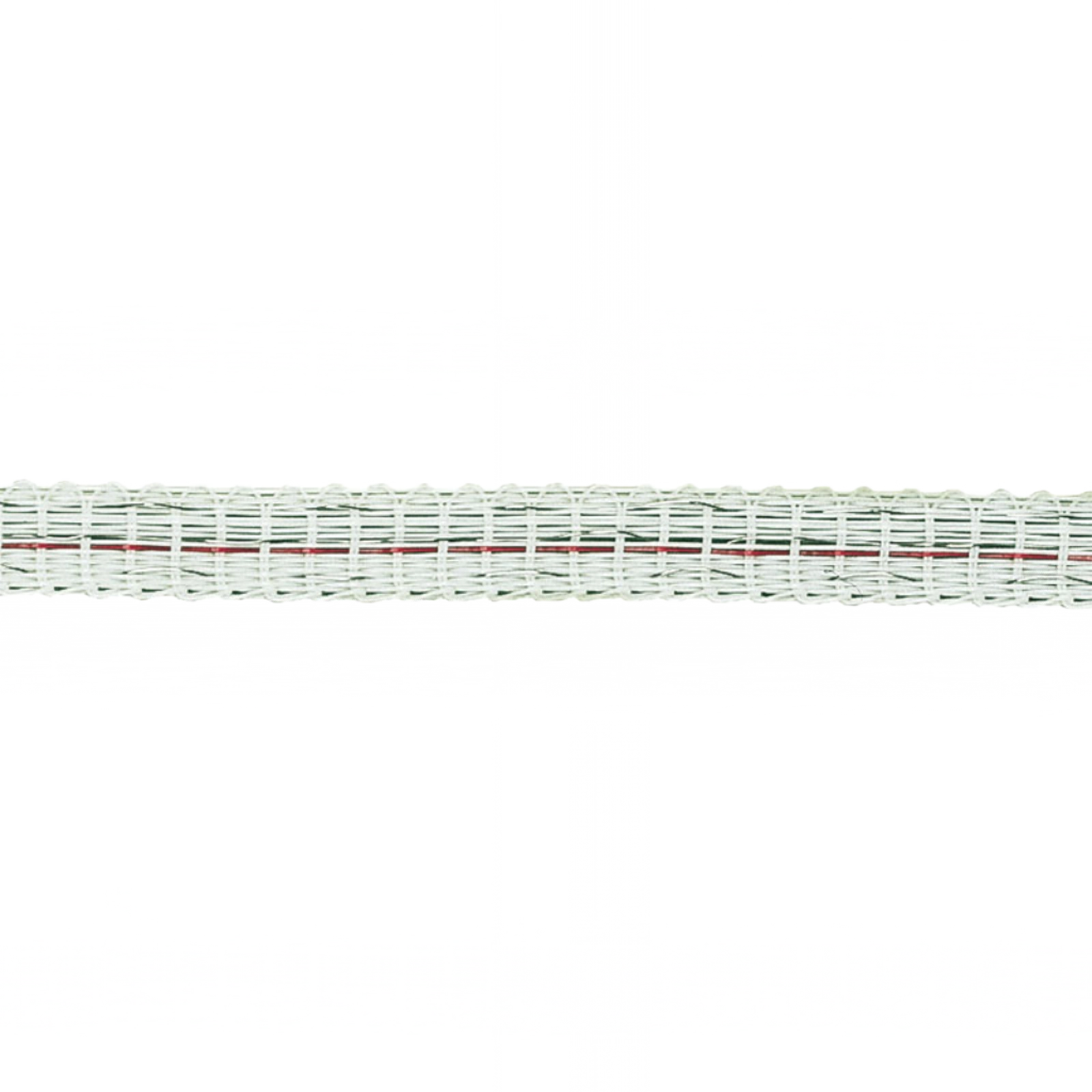 Weißes Weidezaunband mit rotem Faden, 10 mm breit, 3 Edelstahlleiter für optimale Leitfähigkeit, 200 m Rolle.