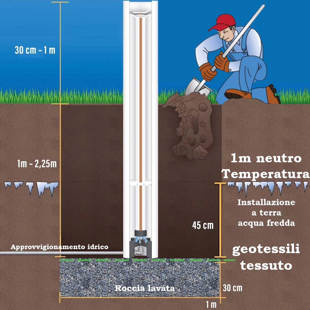 Al di sotto della linea di gelo, in genere 60–80 cm (in base alle condizioni locali).